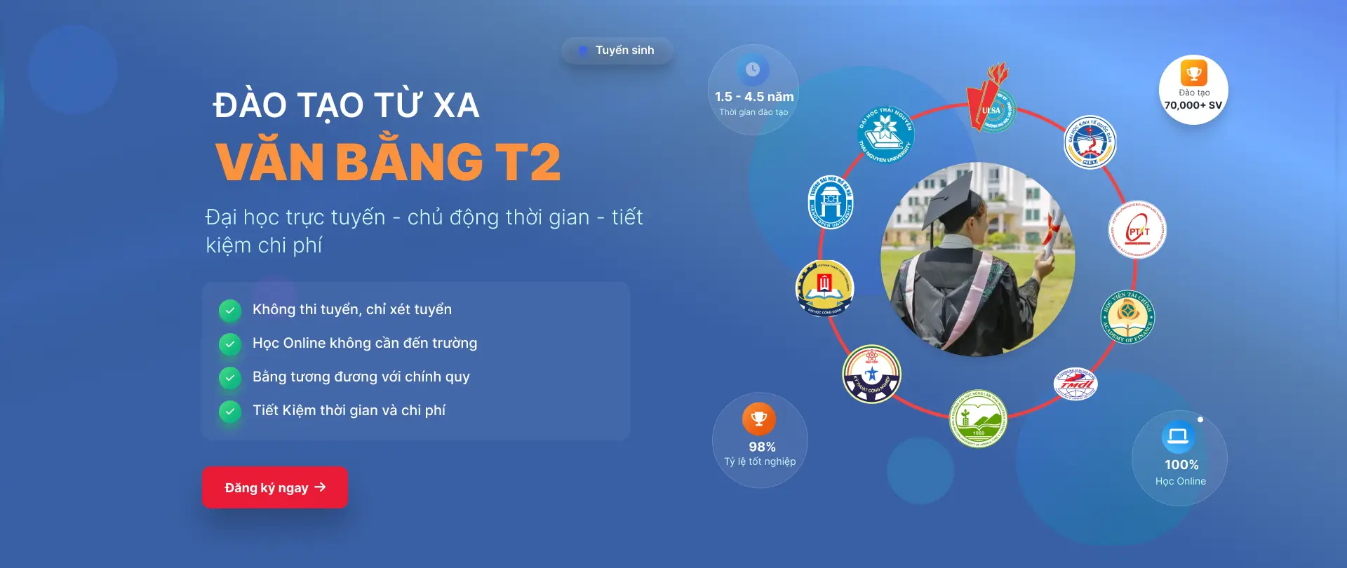 Tìm hiểu thêm →Học đại học từ xa giúp chủ động thời gian, tiết kiệm chi phí và vẫn đảm bảo bằng cấp giá trị. Xem lý do nên học đại học từ xa ngay hôm nay.